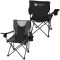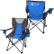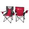 This durable folding chair is made of gray rip-stop polyester and 600D fabric. Features two-tone hourglass accents on back and seat of chair. Both arm rests feature built-in can holders and complete with a large zippered pocket on the back of chair.